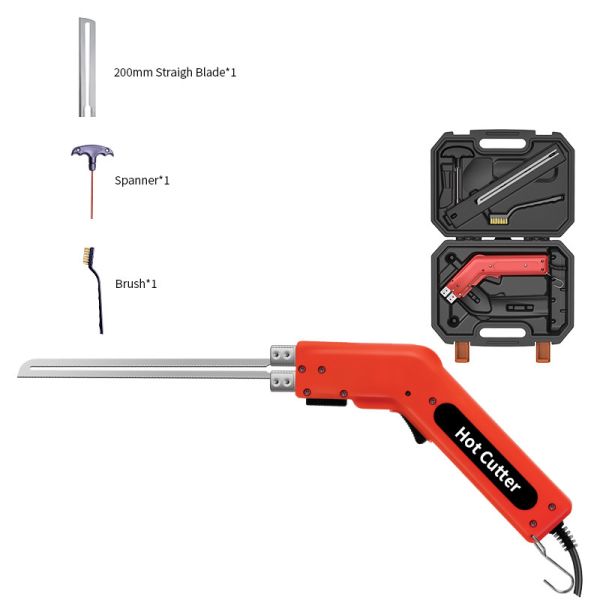 This hot foam cutter is the first generation of electric heating knife, it is handheld electric heating foam knife through large current. This electric knife is designed to be hand-held, ergonomic, more comfortable to use, and can effectively save manpower and material resources. This kind of electric heating knife uses special blade material, the preheating time is very short, only a few seconds the blade can reach the red state, high efficiency. The advantages of H8 handheld electric heating knife are fast preheating, high efficiency (direct use of blade heating, small loss), fast speed, with 200mm sponge straight blade and auxiliary long version, a wide range of applications, can be used to cut foam, sponge, pearl cotton, XPS insulation board, KT board, Poly long and other low melting point products. Overall this is an electric heat cutter that exceeds expectations, is easy to use and economical to use. This hand-held electric heating knife with fine materials, quality assurance, exquisite quality, suitable for DIY handcraft, circular creation handcraft, sculpture, wedding props, advertising, model props, furniture, construction, packaging and other industries.